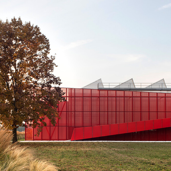 The two buildings are made from recyclable materials and do not consume more land, as they were re-industrialized on an abandoned site. An extremely careful design led to the construction of modular, prefabricated units, which are easy to assemble and disassemble, with no material waste. A 180kW photovoltaic system and the wise use of natural light also reduce the environmental impact. The design helps to harmonize the industrial area with the surrounding agricultural landscape.
