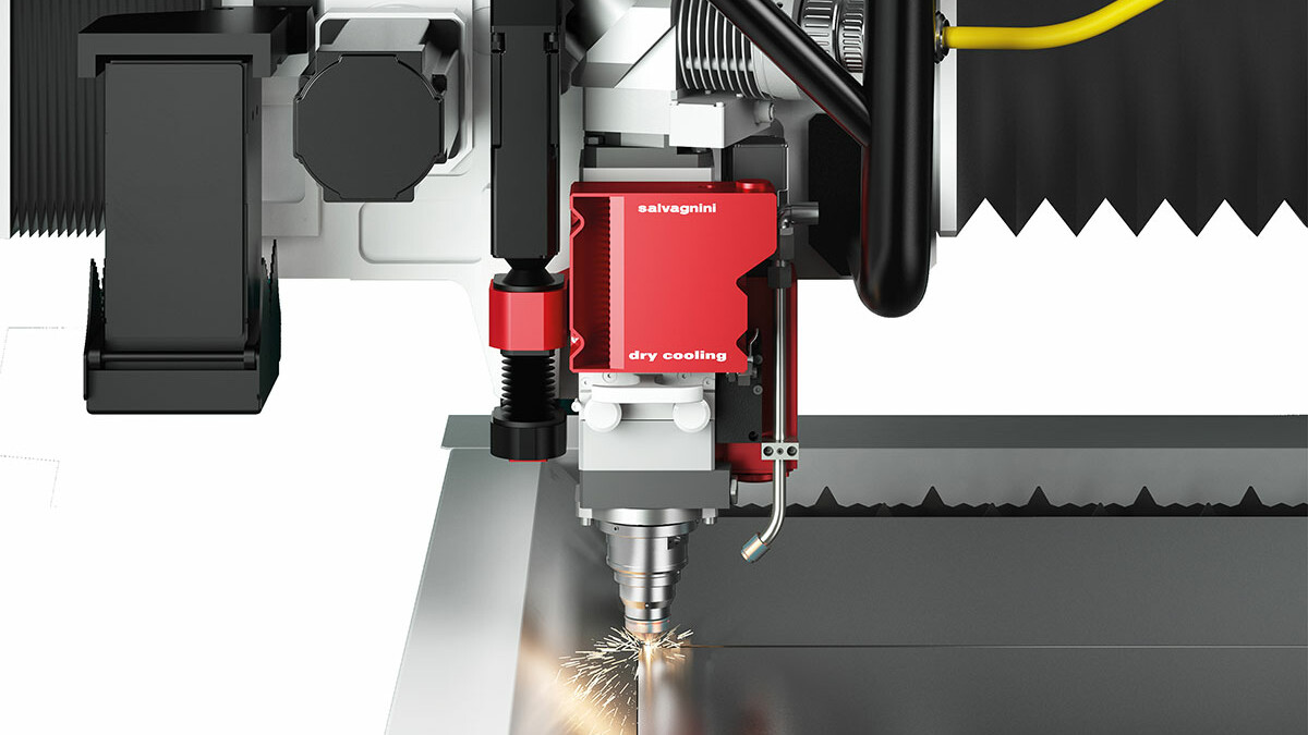The L3 is equipped with a single laser head, designed by Salvagnini, used to cut all the allowed materials and thicknesses. It is equipped with the patented DRY-COOLING system, used to actively control the temperature of the optics. Its process sensors control and adapt the piercing in real time, monitoring any cutting losses, stopping the process, and restarting it with appropriately corrected parameters. The TRADJUST function, integrated into the proprietary control, ensures automatic parameter modulation according to the trajectories, making the system easier to use.