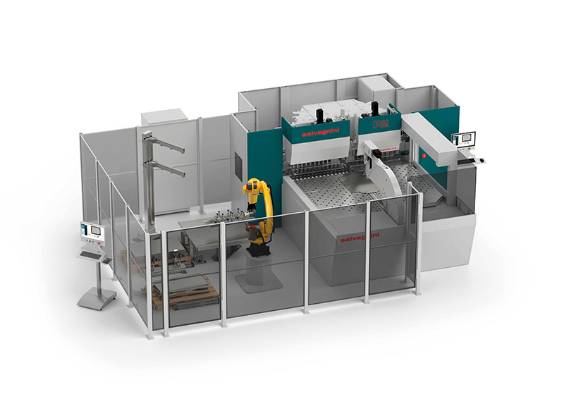P-Robot-konfigurationen kan anpassas: Salvagnini erbjuder både enkla produktionsflöden med enbart lastnings-/avlastningsassistans och mer komplexa system som till exempel inkluderar automatisk pallhantering eller integrationer med tredjepartssystem, såsom arbetsstationer för hörnformning, märkning, lasermärkning, nitning och svetsning.